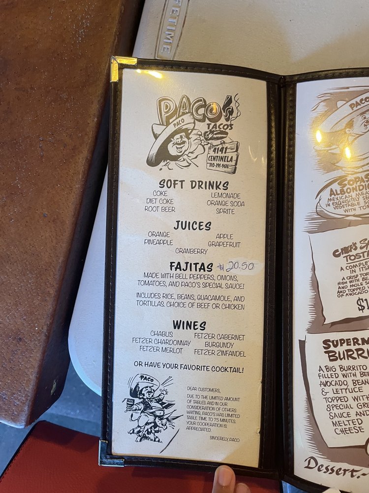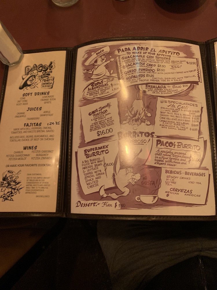 Paco's Tacos Menu (Update 2025)